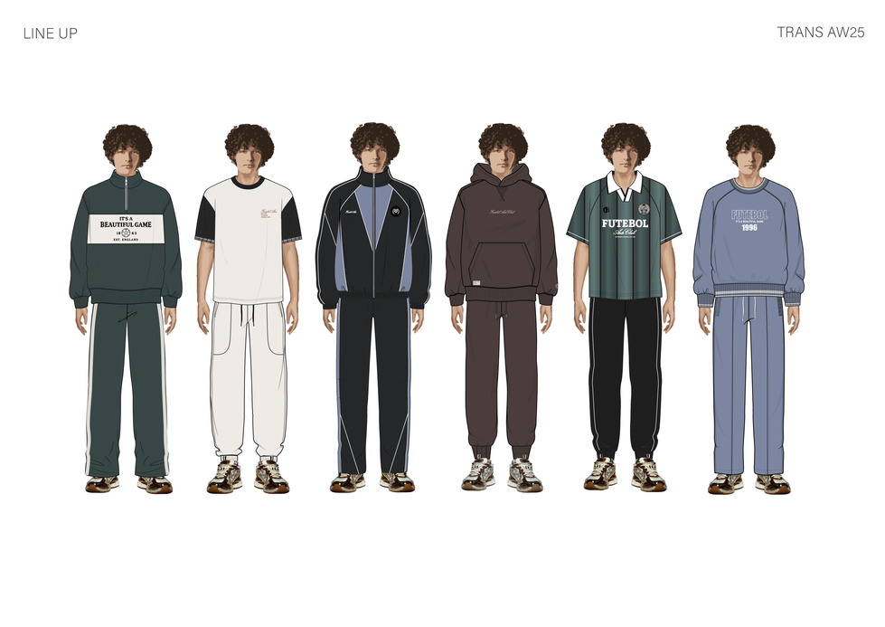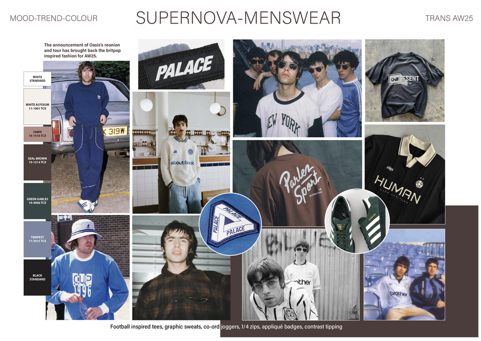 AW25 Mens transitional trends. Inspired by the iconic elements from the 1990s, reflecting the distinctive styles associated with the Gallagher brothers.